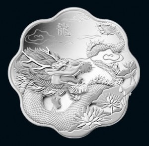 Auf den ersten Blick ist klar, dass man es hier mit etwas ganz Besonderem zu tun hat: Der geschwungene Rand verleiht den Silbermünzen ein einzigartiges Aussehen und kennzeichnet sie klar als Sammlerstücke, obwohl sie auch einen Nennwert tragen und mit ihrer Reinheit von 99,99 Prozent die höchsten Ansprüche erfüllen. Bestechend ist das Design mit dem auf chinesische Art schlangenähnlichen und Geweih tragenden Drachen, dessen Windungen den Schwung des Münzrandes fortsetzen. Auch die Wolken im Hintergrund spiegeln diese Wellenlinien wider. Eindrucksvoll ist auch der Detailreichtum mit winzigen Drachenschuppen und den fein gestalteten Lotusblüten im Vordergrund – insgesamt also ein wahres Schmuckstück.