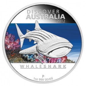 Münzsammler haben bei der Perth Mint einen dicken Fisch an der Angel: Der Walhai, der in australischen Gewässern beheimatet ist, ist tatsächlich der größte Fisch der Welt. Die Ausgabe „Whaleshark“ der Discover Australia Serie 2012 wird diesem Giganten gerecht, indem sie dem Meeresbewohner fast die gesamte Fläche einräumt. Der in Proof-Qualität geprägte, silberne Walhai hebt sich dabei vom kolorierten Hintergrund ab, der das Ningaloo Reef darstellt. In diesen Gewässern vor der Nordküste Australiens ist der Fisch zu Hause.