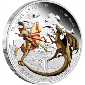 Die Serie Dragons of Legend der australischen Perth Mint geht in die dritte Runde: Nach dem Red Welsh Dragon und dem Chinese Dragon ist nun die Ausgabe St. George and the Dragon erschienen, dritte von fünf kolorierten Silbermünzen der Serie, die Drachen aus verschiedenen Mythologien zeigt.Der Heilige Georg wurde vor allem im Mittelalter als Schutzpatron der Ritter verehrt. So war er zum Beispiel Patron des Templerordens. Zu dieser Zeit und damit lange nach seinem von verschiedenen Quellen berichteten Märtyrertod Anfang des 4. Jahrhunderts entstand die Legende von Sankt Georg und dem Drachen: Georg tötet das Fabeltier und rettet so eine Prinzessin, die dem Drachen geopfert werden sollte. Anschließend bekehrt der Heilige die dankbare Bevölkerung zum christlichen Glauben und geht seiner Wege.