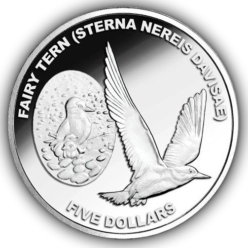 Die New Zealand Post gibt jedes Jahr ein Silbermünze mit einer bedrohten Art als Motiv heraus. Für 2012 fiel die Wahl auf die Australseeschwalbe. Sternula nereis davisae lautet der wissenschaftliche Name des Vogels aus Neuseeland. In der Maori-Sprache wird er Tara-iti genannt. Die winzigen Vögel wiegen, wenn sie ausgewachsen sind, nur etwa 70 Gramm. Sie brühten in Kuhlen im Sand am Strand, wo sie leicht zur Beute von Hunden, Katzen oder Ratten werden.