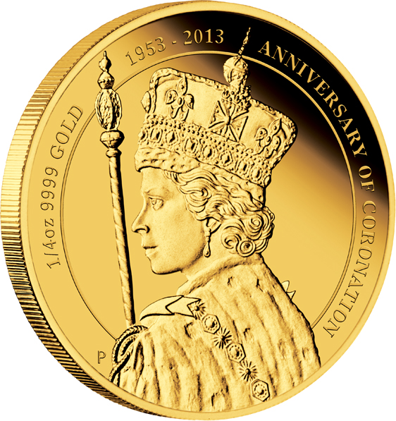 Vor 60 Jahren, am 2. Juni 1953, wurde Elizabeth II zur Königin des Vereinigten Königreichs gekrönt. Zum diamantenen Jubiläum ehrt die Perth Mint die Monarchin, die auch das offizielle Staatsoberhaupt Australiens ist, mit einer exklusiven Goldmünze. Das in höchster Proof-Qualität geprägte Sammlerstück aus 1/4 Unze Feingold zeigt die Königin im Krönungsornat. Nur 1.000 Stück werden von dieser Goldmünze weltweit ausgegeben.Als Königin von Australien ist die Queen bis heute das offzielle Staatsoberhaupt der ehemaligen britischen Kolonie. In einer Abstimmung im Jahr 1999 entschieden die Australier sich dagegen, eine Republik einzuführen und behielten ihren Status als Commenwealth Realm mit Elizabeth II an der Spitze des Staates – ein Königshaus ist schließlich immer gut für glamouröse Auftritte und den ein oder anderen Skandal. Obwohl sie die erste australische Monarchin dieses Namens ist, wird die Queen auch Down Under als Elizabeth die Zweite geführt. Sie ist die erste des britischen Königshauses, die Australien als regierende Monarchin einen Besuch abstattete. Inzwischen hat sie das Land 16 Mal besucht; zuletzt bereiteten ihr ihre australischen Untertanen 2011 einen begeisterten Empfang.