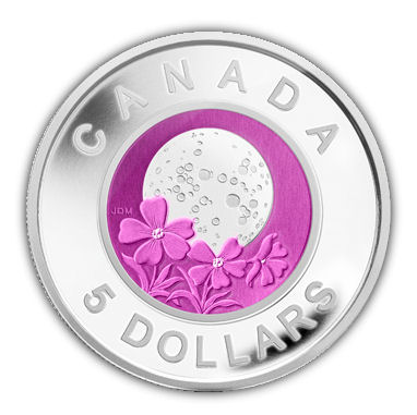 Pink moon is on its way – so sang es Nick Drake auf seinem letzten, 1972 erschienen Album. Die Ausgabe „Pink Full Moon“ bildet nun auch den Abschluss der Vollmond-Serie der Royal Canadian Mint. Die Münzen aus Sterlingsilber mit einem Kern aus farbigem Niob sind eine Alternative zu Silbermünzen mit Farbapplikationen und ein interessantes neues Gebiet für Münzsammler. Mit einer Auflage von 7.500 Stück sind sie außerdem erfreulich selten.Während die Bedeutung von Nick Drakes berühmtem Song heute noch Debatten unter den Musikfans entfacht, wissen die Numismatik-Fans genau, woran sie sind: In Kanada bezeichneten die Algonquin den Frühlingsmond als den rosaroten Mond – sie hatten verschiedene Bezeichnungen für die Vollmonde im Jahreslauf, so wie wir heute für die Monate. Der Pink Moon verdankt seinen Namen wohl den Phlox, die als erste Blumen Vorboten des Frühlings waren. Sie sind auch auf dem Niob-Motiv der Silbermünze zu finden.