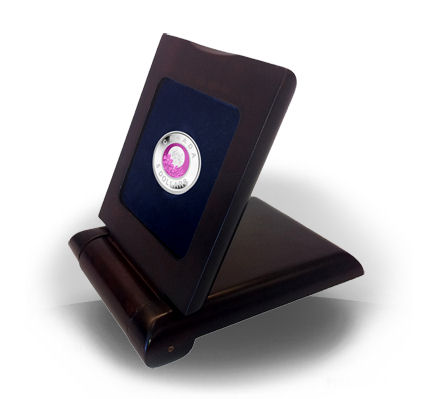 Der Nennwert der Sammlerstücke beträgt 5 Dollars. Geliefert werden die Schmuckstücke mit nummeriertem Echtheitszertifikat und verpackt in ein edles Etui aus Ahornholz, in dem die Münze sich auch ideal präsentieren lässt.