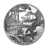 Auffällig ist das Maul voller nach vorn gerichteter Zähne: Rhamphorhynchus, bekanntester Vertreter der Langschwanzflugsaurier, war vermutlich ein Fischfresser, der sich seine Beute aus dem Jurameer schnappte. Auf der Rückseite der Silbermünze sieht man den Dino in Aktion, in diesem Fall auf der Jagd nach einer Großlibelle. Im Hintergrund ist die subtropische Landschaft der Jurazeit mit Farnbäumen am Lagunenufer dargestellt. Dank der Prägung in Proof-Qualität sind die Details der urzeitlichen Landschaft eindrucksvoll in Szene gesetzt.