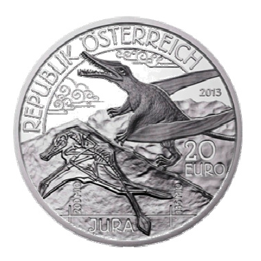 In Österreich sind die Dinos los: In Zusammenarbeit mit dem Naturhistorischen Museum in Wien hat die Münze Österreich die Silber-Serie „Lebendige Urzeit“ entwickelt, in der jetzt mit der Ausgabe „Jura“ die zweite Edition erschienen ist. Nach den faszinierenden Wasserbewohnern der Trias konzentriert sich das Motiv diesmal auf die Luft: Gigantische Flugsaurier beherrschten vor rund 200 Millionen Jahren den Himmel über Europa.Die Jurazeit war die erste Blütezeit der Dinosaurier, aber auch Funde von frühen Säugetieren und des als Urvogel bekannt gewordenen Archaeopteryx stammen aus dieser Periode. Die Wertseite der Sammlermünze zeigt im unteren Bereich die Zeitleiste, die an die Vorgängerausgabe Trias anschließt. Hauptdarsteller des Motivs ist der Flugsaurier Rhamphorhynchus, dessen Fossil im Naturhistorischen Museum zu sehen ist.
