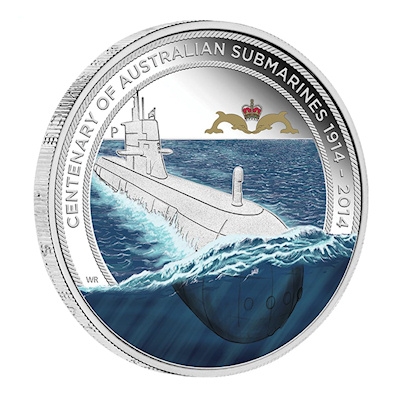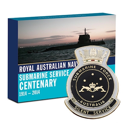 Im Jahr 1914 kamen die ersten beiden U-Boote aus Großbritannien in Australien an. Schon bald darauf hatten sie ihren Einsatz im Ersten Weltkrieg, wobei eines der U-Boote spurlos verschwand und das andere versenkt wurde. Das Abzeichen mit zwei Delphinen und einer Krone, das auch auf dem Motiv der Silbermünze zu sehen ist, wurde erst später eingeführt, ist heute jedoch ein stolzes Symbol für die Marinesoldaten und -offiziere.