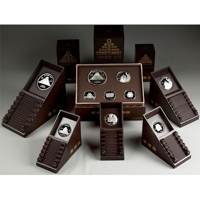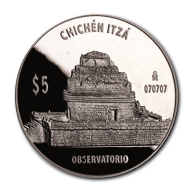 Ein besonders schönes Datum, wenn auch nicht nach dem Maya-Kalender, tragen die Silbermünzen der „Chichén Itzá“-Serie: 070707. Am 7. Juli 2007 fand nämlich die Wahl der sieben Weltwunder der Moderne in Lissabon statt, die Anlass zu dieser Münzserie gab. Neben dem schönen Motiv und der hohen Qualität dürfen Münzsammler sich dabei auch über niedrige Auflagen freuen: Die drei Ausgaben in einer Unze sind jeweils auf 10.000 Stück limitiert. Komplettiert wird die Serie mit der zwei Unzen schweren Münze „Templo de los Guerreros“ und der fünf Unzen schweren „Piramide de Kukulcan„.