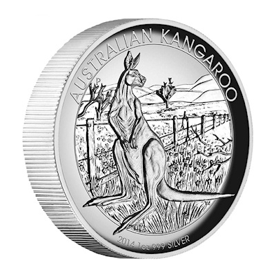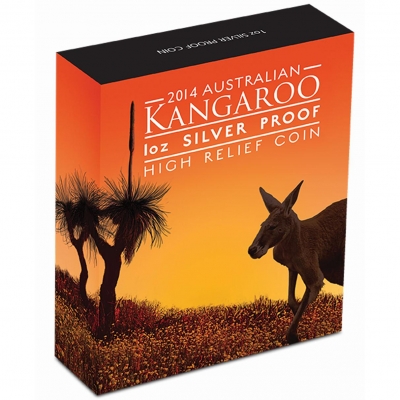 High Relief steht für besonders detailreiche, aufwendige Sammlerstücke. Auch die Silbermünze Australian Kangaroo 2014 gewinnt durch das Hochrelief eine beeindruckende darstellerische Tiefe. Das Motiv zeigt ein ausgewachsenes Känguru, das sich aufmerksam umblickt. Im Hintergrund sind ein Zaun und typisch australisches Farmland zu sehen. Die Münze enthält 1 oz Feinsilber bei einem Feingehalt von 999/1000.