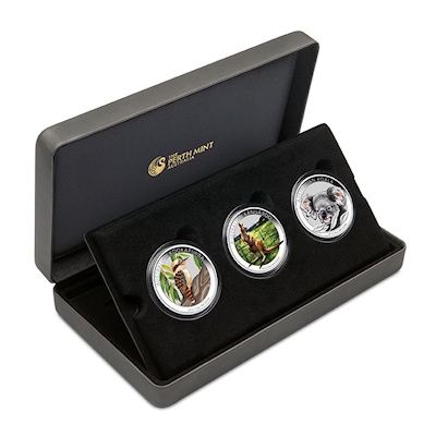Drei Lieblinge der Australien-Fans in einem Set: Känguru, Koala und Kookaburra präsentiert die Perth Mint auch dieses Jahr gemeinsam als „Australian Outback“-Kollektion. Die Münzen enthalten jeweils 1/2 oz Feinsilber und zeigen in diesem Jahr ein komplett mit Farbapplikationen gestaltetes Motiv. Die Auflage für diese beliebten Sammler-Sets beträgt 4.000 Stück.