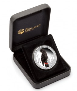 Nachdem die Unterwasserwelt schon ausführlich beleuchtet wurde, widmen die Designer der Perth Mint sich nun in einer neuen Serie von Silbermünzen den Herren der Lüfte des australischen Kontinents. Ebenso farbenprächtig wie die Vögel lassen die eine halbe Unze schweren und in höchster Proof-Qualität geprägten Stücke die Herzen der Münzsammler höher schlagen. Den Auftakt zur fünfteiligen Serie bildet der Red-Tailed Black Cockatoo.Im Deutschen wird der Vogel Banks-Rabenkakadu oder auch Rotschwanz-Rabenkakadu genannt. Der Name rührt von den leuchtend roten Schwanzfedern der Männchen her, die der Papagei auf der Silbermünze deutlich präsentiert. Die Tiere kommen in verschiedenen Regionen in ganz Australien vor und ernähren sich überweigend von den Samen der Eukalyptusbäume. Unterarten des Banks-Kakadus gelten teilweise als gefährdet, vor allem aufgrund des schwindenden Lebensraums durch die Abholzung von Eukalyptusbäumen.