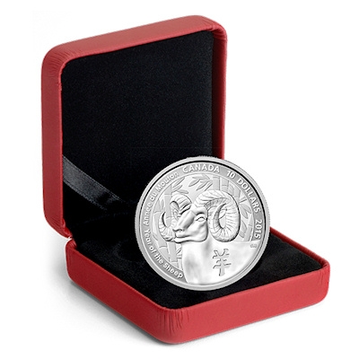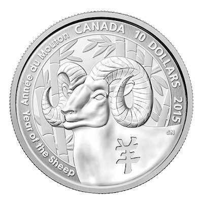 Das Motiv dieser Silbermünze vereint die chinesische Tradition mit typisch kanadischen Elementen. Es zeigt im Hintergrund einen Bambuswald als Symbol langen Lebens, vorne das Schriftzeichen „yang“, das für Schaf und Ziege steht. Auf dem Rand sind Prägejahr, Nennwert und die Bezeichnung „Jahr des Schafs“ auf englisch und französisch zu finden. Dominiert wird das Bild von einem Schafskopf mit auffälligen gedrehten Hörnern: Dabei handelt es sich um ein kanadisches Dickhornschaf, eine Art, die vor allem in den Gebirgsregionen im Westen Kanadas beheimatet ist.