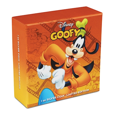 „Mickey & Friends“ heißt die neue Silber-Serie für alle Disney-Fans. Die beliebtesten Zeichentrick-Figuren wurden dafür mit aufwendigen Farbapplikationen auf Sammlermünzen aus 1 oz Feinsilber übertragen. Mit dabei sind natürlich Micky Maus und Minnie Maus, Donald und Daisy Duck – und auch ein beliebter Tollpatsch darf nicht fehlen: Goofy, gleich zu erkennen an seinem hohen Hut und der Weste.