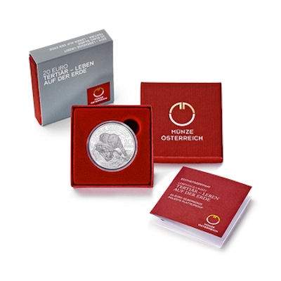 Die Silbermünze hat einen Feingehalt von 900/1000 und einen Durchmesser von 34 Millimetern. Der Nennwert liegt bei 20 Euro. Die Zeitleiste auf der Wertseite verbindet diese Ausgabe mit den Vorgängern Trias, Jura und Kreide sowie mit der letzten Edition, dem Quartär. Die Sammlerstücke werden im Etui und mit nummeriertem Echtheitszertifikat ausgeliefert. Die Auflage ist auf 50.000 Stück begrenzt.