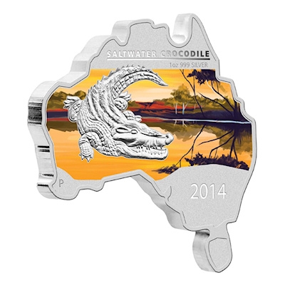 Die Map Shaped-Münze aus 1 oz Feinsilber (Feingehalt 999/1000) hat die Form Australiens und zeigt ein silbernes Leistenkrokodil vor einer kolorierten Flusslandschaft mit Abendstimmung. Im „Süden“ ist das Prägejahr zu finden, das Zeichen der Perth Mint ist markiert im Westen die Lage der Stadt Perth. An der breitesten Stelle hat die Silbermünze einen Durchmesser von 40,6 Millimetern. Die Auflage dieser Ausgabe wurde auf 6.000 Exemplare begrenzt, die mit nummeriertem Echtheitszertifikat, im Etui und Karton im Seriendesign ausgeliefert werden.