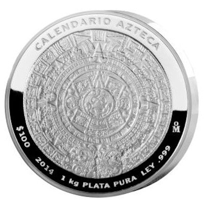 mexiko-azteken-kalender-1-kg-silberNeben der beliebten Anlagemünze Libertad und der Kulturenserie bringt die Casa de Moneda de México jedes Jahr ein ganz besonderes Sammlerstück in Silber heraus: die ein Kilo schwere Münze „Aztekenkalender“. Sie überzeugt mit einem Feingehalt von 999/1000, Prooflike-Prägung und einer streng limitierten Auflage – für 2014 liegt sie bei nur 500 Silbermünzen. Aber natürlich ist es vor allem das detailreiche, bemerkenswerte Motiv, das den Reiz für Münzsammler ausmacht.