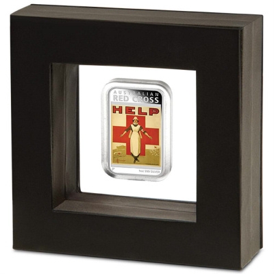 australian-ww1-posters-red-cross-1-oz-silber-koloriert-shipperDie Sammlermünze aus 1 oz Feinsilber hat die Maße 47,60 mal 27,60 Millimeter und eine Stärke von vier Millimetern. Die  rechteckige Form ist ideal geeignet, um die Postermotive zu präsentieren. Die Wertseite zeigt ein Porträt der Queen und den Nennwert von 1 AUD. Eine Besonderheit ist das Plexiglas-Etui; sicher geschützt lässt sich die Münze so von beiden Seiten betrachten. Die Sammlerstücke werden im Etui, mit Umverpackung mit nummeriertem Echtheitszertifikat ausgeliefert. Jede Ausgabe hat eine Auflage von 5.000 Silbermünzen.