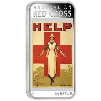 australian-ww1-posters-red-cross-1-oz-silber-koloriertHundert Jahre sind seit dem Ersten Weltkrieg vergangen; dieses traurige Jubiläum nimmt die Perth Mint zum Anlass für eine fünfteilige Serie von Silbermünzen, die von 2014 bis 2018 erscheinen. Sie zeigen Original-Poster aus den Kriegsjahren. Passend dazu entschied man sich bei den Sammlerstücken aus 1 oz Feinsilber für ein rechteckiges Format. Mit „Red Cross“ ist nun die zweite Ausgabe erschienen, die wie die Auftakt-Edition Enlistment auf 5.000 Exemplare weltweit limitiert ist.