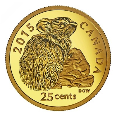 Klein, aber fein: Unter dieses Motto hat die Royal Canadian Mint eine Goldmünzen-Serie gestellt. Nur 11 Millimeter Durchmesser hat die kleinste Goldmünze der Prägeanstalt – und zeigt dennoch wunderbar detailreiche Motive. Nach dem Chipmunk 2014 hat man sich 2015 wieder für einen kleinen Vertreter der kanadischen Tierwelt als Motiv entschieden – den Amerikanischen Pfeifhasen.