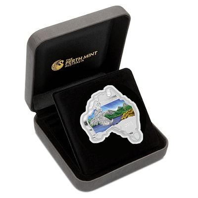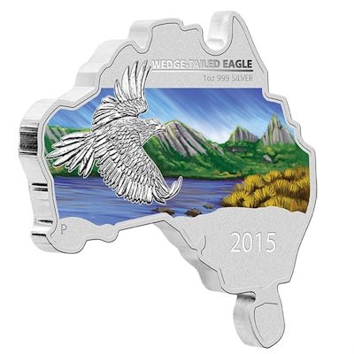 Die Map Shaped-Münze aus 1 oz Feinsilber (Feingehalt 999/1000) hat die Form Australiens und zeigt einen silbernen Keilschwanzadler vor einer kolorierten Flusslandschaft mit Bergen. Im „Süden“ ist das Prägejahr zu finden, das Zeichen der Perth Mint markiert im Westen die Lage der Stadt Perth. An der breitesten Stelle hat die Silbermünze einen Durchmesser von 40,6 Millimetern. Die Auflage dieser Ausgabe wurde auf 6.000 Exemplare begrenzt, die mit nummeriertem Echtheitszertifikat, im Etui und Karton im Seriendesign ausgeliefert werden.