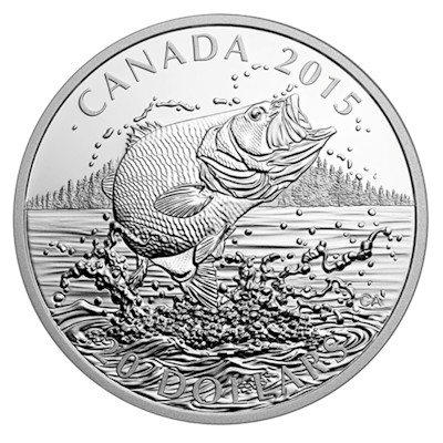 Angeln ist eine Art Nationalsport in Kanada, die Küsten, Flüsse und teils abgeschiedenen Seen bieten schier unendliche Möglichkeiten für abenteuerlustige Angler. Die Provinz Ontario wirbt sogar damit, die Heimat der weltweit meisten Süßwasserfischarten zu sein. Ein beliebter Angelfisch ist der Forellenbarsch, der im Osten Nordamerikas verbreitet ist. Sein englischer Name „Largemouth Bass“ liefert eine treffende Beschreibung: Er ist ein echtes Großmaul; der Kopf macht rund ein Viertel seiner Gesamtlänge aus. Auf der Silbermünze ist dieses Merkmal gut zu sehen. Die Raubfische sind bei Anglern so beliebt, dass sie auch in vielen größeren Seen Europas eingeführt wurden. Forellenbarsche können rund einen Meter lang und mehr als 10 Kilogramm schwer werden – eine schöne Trophäe für einen Angler also. Wer es noch eine Nummer größer möchte, hält sich in Kanada an Lachs und Stör.