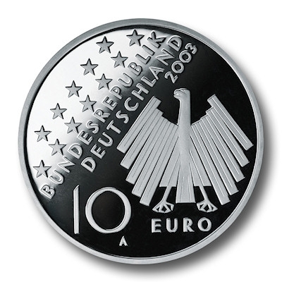 Die Gedenkmünze ist in Sterling-Silber (Feingehalt 925/1000) geprägt. Sie hat einen Durchmesser von 32,5 Millimetern und wurde von allen fünf deutschen Prägeanstalten hergestellt. Auf der Wertseite ist wie bei diesen Münzen üblich der Bundesadler abgebildet. Die Bundesrepublik Deutschland gibt jedes Jahr mehrere 10-Euro-Silbermünzen heraus. 2003 wurden unter anderem auch Justus von Liebig, die Industrielandschaft Ruhrgebiet und der 100. Geburtstag des Deutschen Museums geehrt.