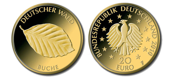 fichte_vorneDie Goldmünzen mit einem Durchmesser von 17,5 Millimetern zeigen jeweils ein Blatt bzw. einen Nadelzweig der Baumart. Die Sammlerstücke, die einen Nennwert von 20 Euro tragen, zeigen umseitig den Bundesadler. Sie enthalten 1/8 Unze Feingold, weisen einen Feingehalt von 999,9/1000 auf und werden in Stempelglanz-Qualität geprägt. Fünf deutsche Münzstätten sind für die Herstellung verantwortlich: Berlin (A), München (D), Stuttgart (F), Karlsruhe (G) und Hamburg (J). Für Numismatik-Fans bieten manche Münzhändler auch die Möglichkeit ein Set mit Ausgaben aller fünf Prägestätten zu erstehen.