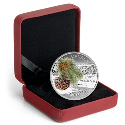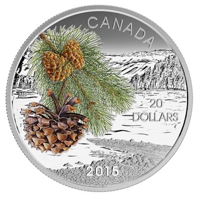 Forests-of-Canada-Coast-Shore-Pine-1-oz-silber-obversDie Silbermünze ist in höchster Proof-Qualität geprägt, sodass die Details der Küstenlandschaft gut zur Geltung kommen. Sie hat einen Durchmesser von 38 Millimetern, einen Nennwert von 20 CAD und einen hohen Feingehalt von 99,99 Prozent. Nach dem Carolinian Tulip Tree ist die Küstenkiefer die zweite Ausgabe einer achtteiligen Serie, die 2015 und 2016 herausgegeben wird. Jede Edition hat eine Auflage von 8.500 Stück. Zu den nächsten Ausgaben gehören Pazifische Eibe und  Balsam-Pappel.