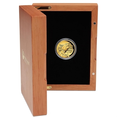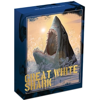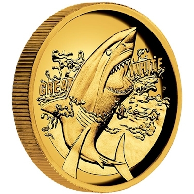 great-white-shark-2015-1-oz-gold-high-relief-shipperDie Goldmünze, die als gesetzliches Zahlungsmittel in Australien gilt, hat einen Durchmesser von 27,30 Millimetern und ist maximal 5 Millimeter dick. Sie ist in höchster Proof-Qualität aus 1 oz Feingold (Feingehalt 99,99 Prozent) geprägt. Ausgeliefert wird das Sammlerstück in einem stilvollen Holzetui und einem Shipper, der das Hai-Motiv in Farbe aufgreift. Natürlich gehört auch ein nummeriertes Echtheitszertifikat dazu. Insgesamt werden von dieser Münze nur 500 Stück ausgegeben.