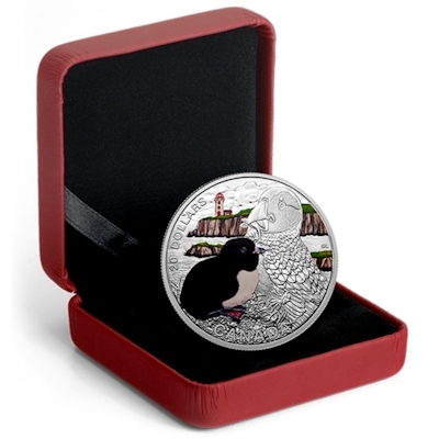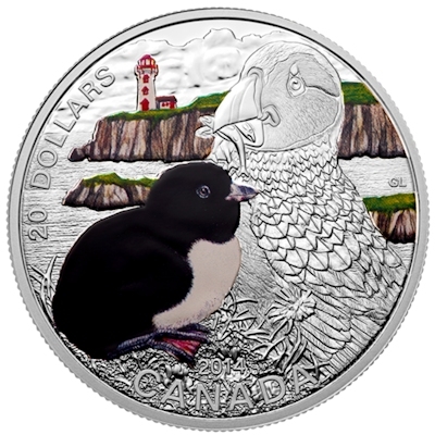 Die Silbermünze zeigt ein koloriertes Küken neben einem silbernen Elternteil, der gerade einen Fisch bringt. Im Hintergrund ist die ebenfalls farbig gestaltete Küste mit einem Leuchtturm zu sehen. Die Silbermünze enthält eine Unze Feinsilber und hat einen Feingehalt von 99,99 Prozent. Sie ist in höchster Proof-Qualität geprägt und trägt den Nennwert von 20 CAD. Der Durchmesser liegt bei 38 Millimetern. Die Sammlerstücke werden im Etui und mit nummeriertem Echtheitszertifikat ausgeliefert. Die Auflage ist begrenzt auf 7.500 Exemplare weltweit. In der Serie sind bereits vier Ausgaben erschienen, zum Beispiel der Kaninchenkauz.
