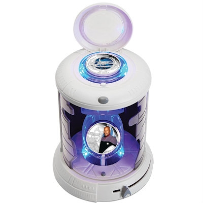 Das Set besteht aus zwei in Proof-Qualität geprägten Silbermünzen, die jeweils 1 oz Feinsilber enthalten (Feingehalt 999/1000). Wenn sich der Transporter öffnet, sieht man sich Captain Sisko gegenüber und es entsteht ein Beam-Effekt. Die Münze mit der Raumstation ist in den Deckel eingelassen. Beide sind mit Farbapplikationen detailreich gestaltet.