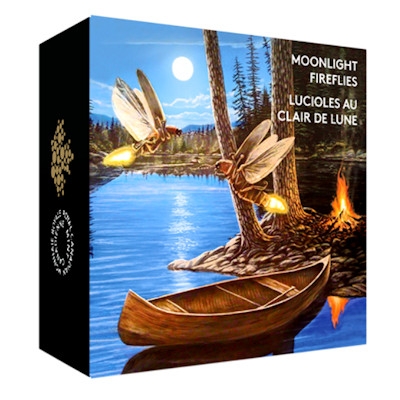 Die Fireflies-Münze ist die erste Ausgabe mit Leuchteffekt auf 2 oz Silber der Royal Canadian Mint. Dieselbe Technik kam schon bei kleineren Silbermünzen zum Einsatz, etwa in der Serie Star Charts.
