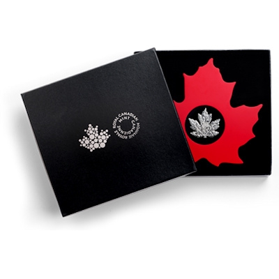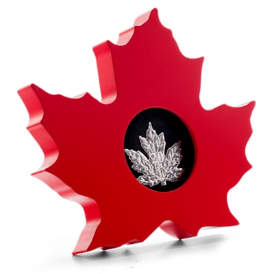 shaped-maple-leaf-1-oz-silber-etuiDas umseitige Portrait der Queen hat sich gut auf das Ahornblatt einpassen lassen. Der maximale Durchmesser liegt bei 38 Millimetern. Das Sammlerstück aus einer Unze Feinsilber wird in einem Etui ausgeliefert, das ebenfalls die Form eines Ahornblatts hat. Außerdem gehört ein passender Shipper dazu. Die Auflage für die Silbermünze mit einem Nennwert von 20 CAD ist begrenzt auf 15.000 Stück weltweit.