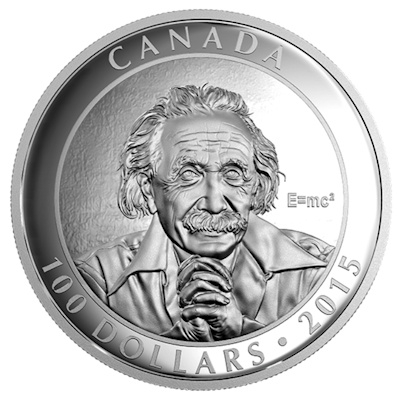 Vor 100 Jahren, am 25. November 1915, trug Albert Einstein vor der Preußischen Akademie der Wissenschaften seine Allgemeine Relativitätstheorie vor, mit der er die Wechselwirkung zwischen Materie und Raumzeit beschrieb. Bis heute ist die Theorie in vielen Tests bestätigt worden – und der Nobelpreisträger gilt als einer der wichtigsten Physiker der Geschichte. Neben seinen wissenschaftlichen Entdeckungen war es aber vor allem Einsteins Persönlichkeit, die ihn zu einer Berühmtheit machte. Eine neue Silbermünze der Royal Canadian Mint zeigt den Physiker jetzt nach einer Portraitaufnahme des kanadischen Fotografen Yousuf Karsh.