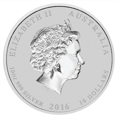 lunar-ii-year-of-the-monkey-10-oz-silber-wertseiteDie Silbermünze hat einen Durchmesser von 85,10 Millimetern und eine Dicke von 6,60 Millimetern. Sie enthält 10 oz Feinsilber (Feingehalt 999/1000) und ist in Stempelglanz-Qualität geprägt. Die Wertseite zeigt das Portrait von Königin Elizabeth II., darunter die Angaben zu Gewicht und Feingehalt sowie den Nennwert von 10 Dollars und das Prägejahr 2016. Die Auflage dieser Bullionmünze ist unlimitiert; sie wird bis Ende 2016 nach Nachfrage und Produktionskapazität geprägt. Dennoch bleibt die Auflage bei solchen Sondergrößen meist gering, was in den Folgejahren zu Preissteigerungen führt.