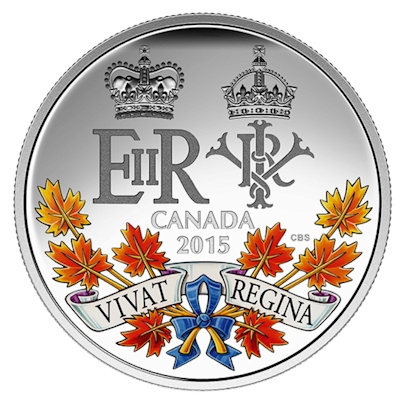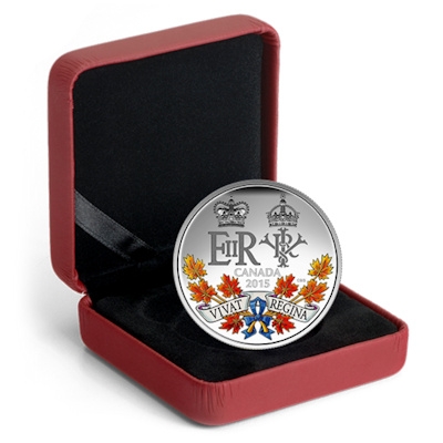 Die Silbermünze aus 1 oz Feinsilber bringt die beiden Monarchinnen in Form ihrer Monogramme zusammen: Links ist Elizabeths Zeichen zu sehen, rechts das Victorias. Darüber findet man jeweils die Darstellung einer Krone in der von der Königin bevorzugten Form. Unterhalb ist ein Kranz aus Ahornblättern zu sehen, der mit leuchtenden Farbapplikationen gestaltet ist. Durch die Blätter schlängelt sich ein Banner mit den Worten „Vivat Regina“ – „Es lebe die Königin“. Die Wertseite des Sammlerstücks mit einem Durchmesser von 38 Millimetern gehört wieder ganz Elizabeth II. Unter ihrem Portrait ist der Nennwert von 20 CAD aufgeprägt. Die Silbermünze ist in höchster Proof-Qualität geprägt, hat einen Feingehalt von 99,99 Prozent und wird im Etui ausgeliefert. Die Auflage ist auf 10.000 Stück limitiert.