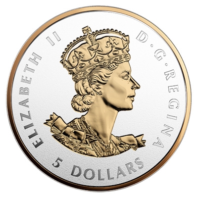 Der Rand der weiteren Silbermünzen ist ebenfalls vergoldet, aber geriffelt. Auf der Wertseite sieht man das vergoldete Bild der jungen Elizabeth II an ihrem Krönungstag. Sie trägt die Imperial State Crown, die zu den britischen Kronjuwelen gehört. Je nach ihrem Silbergehalt tragen die Münzen einen unterschiedlichen Nennwert von 5 Dollars bis zu 1 Dollar. Den hohen Feingehalt von 99,99 Prozent haben alle fünf gemeinsam. Ausgeliefert werden sie in einem gemeinsamen Etui und mit Umverpackung. Die Auflage ist auf 7.500 Silber-Sets beschränkt.