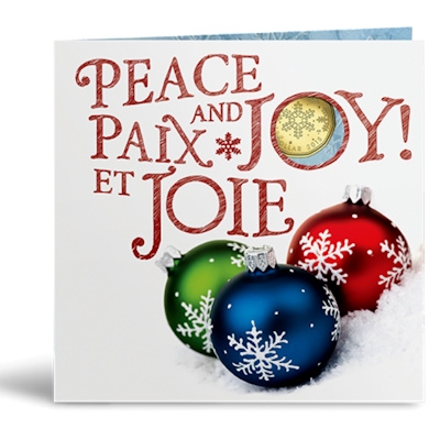 kanada-kursmuenzensatz-holiday-gift-set-2015-karteDas Weihnachts-Set kommt in Blister-Verpackung zum Münzsammler, eingebettet in eine zum Anlass passende Karte. Sie ist mit Christbaumkugeln dekoriert und trägt die Aufschrift „Peace and Joy“. Das Innere ist in Eisblau mit Schneeflocken gestaltet und enthält neben den Münzen auch zweisprachige Weihnachtswünsche – auf Englisch und Französisch, den beiden Amtssprachen Kanadas.