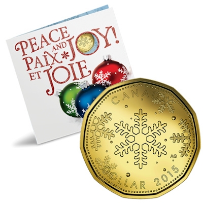 kanada-kursmuenzensatz-holiday-gift-set-2015-komplettSchneeflocken zieren die Wertseite der Dollarmünze. Ebenso wie die anderen vier Münzen des Sets ist sie natürlich unzirkuliert, im Unterschied zu diesen wurde sie aber speziell für das weihnachtliche Münzset geprägt. Die anderen Kursmünzen haben den Wert von 2 Dollars, 25 Cents, 10 Cents und 5 Cents – das Set hat also insgesamt einen Nennwert von 3,40 Dollar. Es handelt sich bis auf den bronzenen Dollar um Kupfer-Nickel-Münzen.