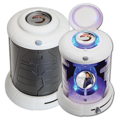 Eine der beiden Silbermünzen ist im Transporter untergebracht. Wenn er sich öffnet, entsteht ein Beam-Effekt, der die Münze in Szene setzt. Sie zeigt Captain Jonathan Archer, dargestellt von Scott Bakula. Er ist mit Farbapplikationen gestaltet und umrahmt von einem Fenster in Form des Sternenflotten-Emblems. Oben findet man die Ausgabe mit der Enterprise unter einem Deckel. Auch sie ist aufwendig koloriert. Beide Sammlerstücke sind in Proof-Qualität geprägt und enthalten jeweils 1 oz Feinsilber (Feingehalt 999/1000).