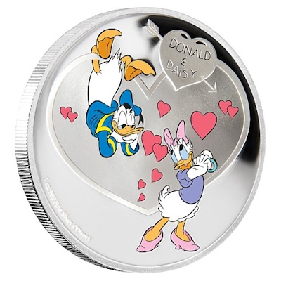 „Love Crazy“ – auf welches Paar würde das besser passen als auf Donald Duck und seine Dauerverlobte Daisy? Nach Mickey und Minnie Mouse sind die beiden Disney-Enten nun die Stars der zweiten Silbermünze mit Liebes-Motto, die die New Zealand Mint als lizensiertes Disney-Produkt herausgibt. Wieder erscheint die liebevoll kolorierte Silbermünze pünktlich zu Weihnachten und ist damit ein ideales Geschenk für zeichentrickbegeisterte Münzsammler.
