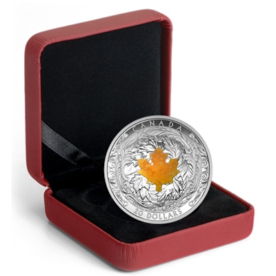 Die Silbermünze hat einen Durchmesser von 38 Millimetern und einen hohen Feingehalt von 99,99 Prozent. Unterhalb des Motivs findet man den Nennwert von 20 CAD, umseitig ist ein Portrait von Königin Elizabeth II. zu sehen. Der Rand ist geriffelt. Das Sammlerstück ist in höchster Proof-Qualität geprägt. In der Serie Majestic Maple Leaves ist auch schon eine Silbermünze mit Jade erschienen.