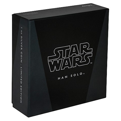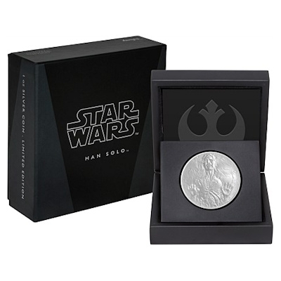 Dass die Silbermünze ein lizensiertes Produkt der Lucasfilm Ltd ist, zeigt eine kleine Aufschrift am Rand. Das Sammlerstück hat einen Durchmesser von 40 Millimetern und einen Feingehalt von 999/1000. Es enthält 1 oz Feinsilber. Ausgabeland ist Niue, die Rückseite zeigt das von anderen Münzen aus Neuseeland bekannte Porträt der Queen und den Nennwert von zwei Dollars. Ausgeliefert werden die Silbermünzen in einem Etui und mit Umverpackung im Star-Wars-Design. Die Auflage ist auf 10.000 Exemplare begrenzt. Bereits erschienen ist die Ausgabe Darth Vader, außerdem zeigt eine Serie kolorierter Silbermünzen die Helden aus dem neuesten Star-Wars-Abenteuer Episode VII.