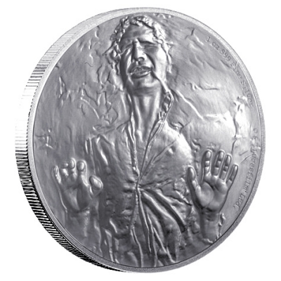 Han Solo ist zurück! Seit gestern hat das Warten für Star-Wars-Fans ein Ende, der siebte Teil – „Das Erwachen der Macht“ – läuft in den Kinos. Mit dabei ist auch Han Solo, Captain des Millenniumfalken und in der ersten Filmtrilogie mehr oder weniger unfreiwilliger Held der Rebellion gegen das Imperium. Ihm hat die New Zealand Mint die zweite Ausgabe ihrer „Star Wars Classic“-Serie gewidmet. Das Motiv der in höchster Proof-Qualität geprägten Silbermünze zeigt Han Solo eingefroren in Karbonit.