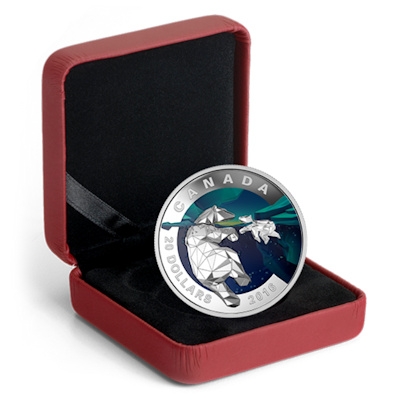 Eisbären sind eines der beliebtesten Motive der Royal Canadian Mint, aber mit der neuen Ausgabe der Silbermünzen-Serie „Geometry in Art“ ist es der Prägeanstalt gelungen, dem vertrauten Motiv neue Facetten abzugewinnen. Das innovative Design im „Low Poly“-Stil gibt dem Sammlerstück einen modernen Look, der durch die farbenprächtige Kolorierung und die hochwertige Proof-Prägung abgerundet wird. Die Auflage ist auf 7.500 Exemplare weltweit begrenzt.