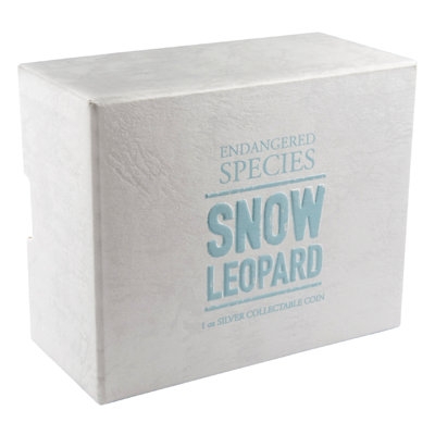 Das Sammlerstück aus 1 oz Feinsilber hat einen Durchmesser von 40,70 Millimetern und einen Feingehalt von 999/1000. Beides ist unten am Rand verzeichnet. Das Ausgabeland Niue und den Nennwert von 2 Neuseelanddollars findet man umseitig, zusammen mit einem Porträt des offiziellen Staatsoberhauptes Königin Elizabeth II. Der Münzrand ist geriffelt. Eine Besonderheit bei dieser Serie ist das Etui, das wie eine hölzerne Frachtbox gestaltet ist. Die Umverpackung ist diesmal passend zum Schneeleoparden in weiß gehalten.