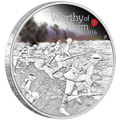 Sie wurden die Helden der jungen australischen Nation: die Soldaten des Australian an New Zealand Army Corps (ANZAC). Noch heute feiert das ganze Land jeden 25. April den ANZAC Day im Gedenken an sie. Zum 100. Jahrestag brachte die Perth Mint die Serie „The ANZAC Spirit“ mit mehreren Gold- und Silbermünzen heraus. Inzwischen hat sich das Kriegsgeschehen mit der Ausgabe „Be Worthy of Them“ nach Frankreich verlagert, wo die Australier an der Schlacht an der Somme beteiligt waren.