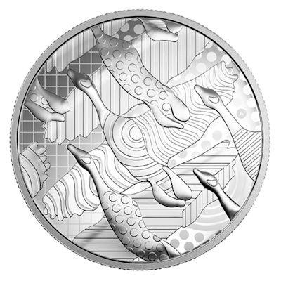 Aus Punkten, Linien und Wellen lässt der Künstler Andrew Lewis einen Schwarm aufsteigender Kanadagänse entstehen. Selbst das markante weiße Kinnband, das das Schwarz von Hals und Kopf unterbricht, ist zu erkennen, verschiedene Finishes machen das Motiv noch lebendiger. Die typische V-Formation haben die Tiere auf der Silbermünze noch nicht eingenommen. Für die Einwohner Nordamerikas ist sie ein wohlbekanntes Bild am Himmel, das den Wechsel der Jahreszeiten ankündigt. Mit ihrer Länge von bis zu einem Meter und der Flügelspannweite von bis zu 175 Zentimetern ist die Gans auch von Weitem gut zu sehen.