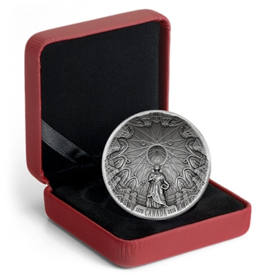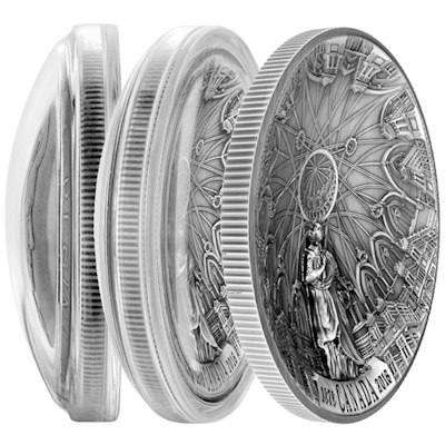 Die Parlamentsbibliothek in Ottawa gehört zu den Nationalsymbolen und architektonischen Sehenswürdigkeiten Kanadas – und bietet sich mit ihrem runden Grundriss und der eindrucksvollen Kuppel als Motiv für eine besondere Silbermünze an: Ein konkaves Sammlerstück in Ultra-High-Relief-Prägung und mit Antikfinish hat die Royal Canadian Mint der Bibliothek gewidmet. Von dieser außergewöhnlichen Silbermünze wurden nur 6.000 Exemplare geprägt.