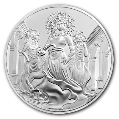 Auf der Silbermünze blicken die drei Gorgonen den Betrachter direkt an. Während die Mittlere zwar Schlangenhaar, aber ein ebenmmäßiges Frauengesicht hat, sind die beiden anderen im Hintergrund gruselig anzusehen. Alle drei tragen wallende griechische Gewänder, wobei das Kleid der vorderen Gorgone mit einer Schlange gegürtet ist. Sie hält außerdem einen Totenschädel in der Hand. Die in höchster Proof-Qualität geprägte Silbermünze hat einen Durchmesser von 40 Millimetern. Sie enthält 1 oz Feinsilber bei einem Feingehalt von 999/1000. Die Wertseite zeigt ein Portrait von Königin Elizabeth II., der Nennwert beträgt zwei Dollars. Das Etui besteht bei diesem Sammlerstück aus einem Beutel in Wildlederoptik, auf den das nummerierte Echtheitszertifikat direkt aufgedruckt ist.