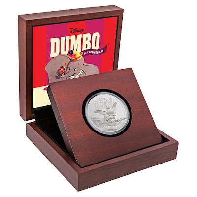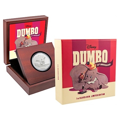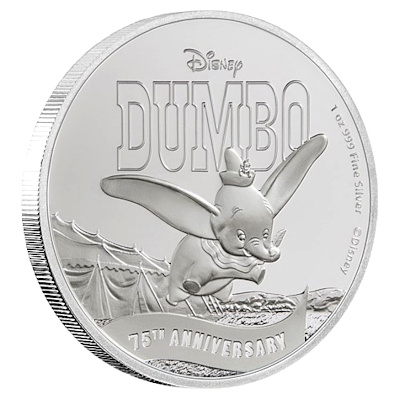 Dumbo, der kleine Elefant mit den riesigen Ohren, gehört zu den bekanntesten Figuren des Disney-Universums. Auch 75 Jahre nach der ersten Ausstrahlung des Films im Jahr 1941 hat die zeitlose Geschichte nichts von ihrem Charme verloren. Die New Zealand Mint ehrt Dumbo zum Geburtstag mit einer Silbermünze in der Serie Disney Classics. Die Silbermünze aus 1 oz Feinsilber ist in höchster Proof-Qualität geprägt und zeigt ein liebevoll gestaltetes Motiv.